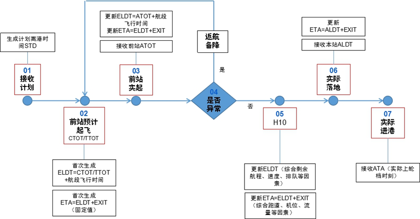 (5)当航班实际着陆后,系统再次根据实际落地时间(ALDT),最后一次更新航班的ETA。