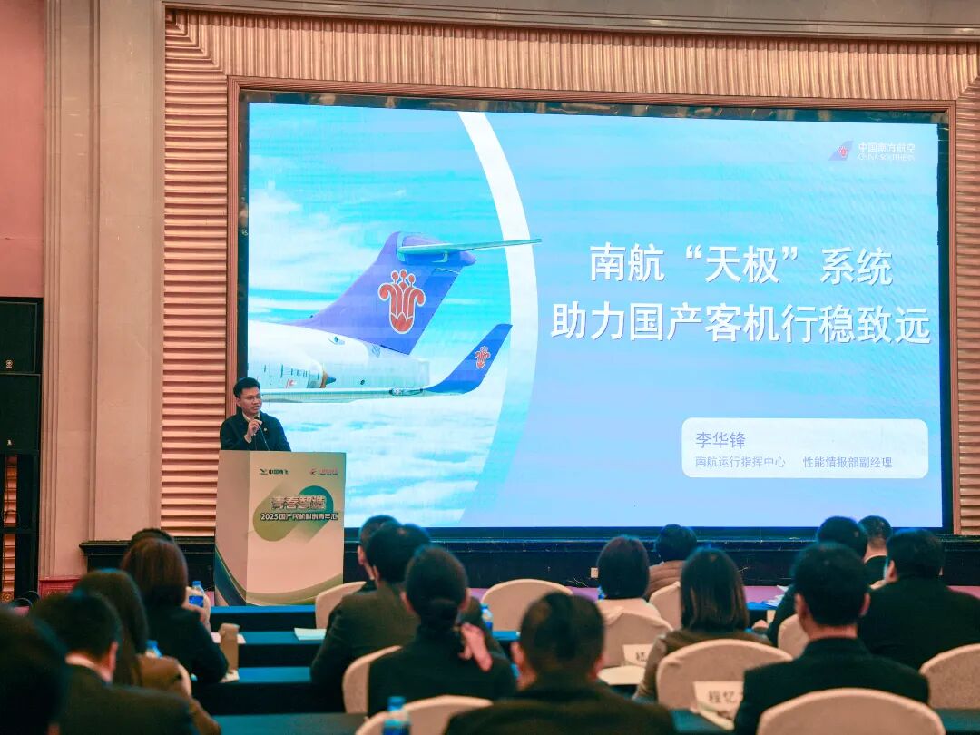 李华锋重点介绍了南航集团自主研发的“天极”飞行计划系统。“这是国内首个自主研发的第二代飞行计划系统”,实现了从引进跟随到自主引领的跨越。通过工作组的不懈努力,实现了C919首月商业运营“航班正常性100%、执行率100%”的成绩,彰显“自主创新托举民航梦,国产赋能彰显中国力”的青年力量。
