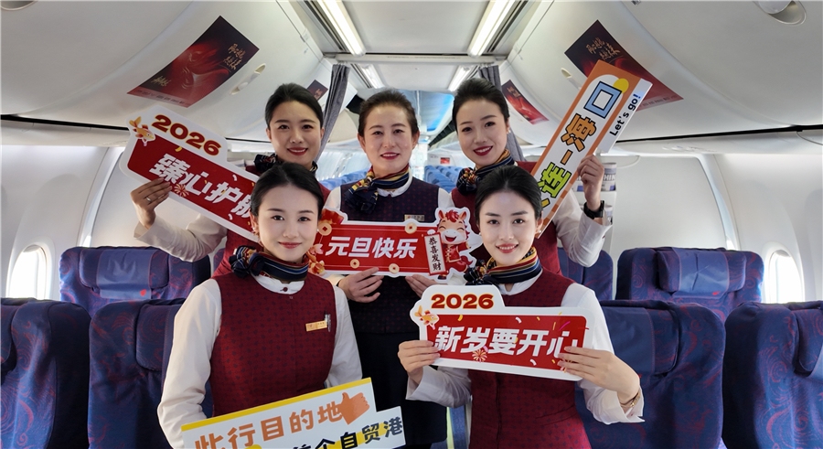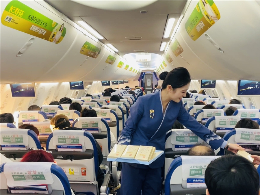 当天,所有主题航班的客舱均经过精心装饰,“同心起航·共赴未来”的主题视觉贯穿始终,营造出浓厚的节日氛围。航班进入平飞阶段后,热情洋溢的机长广播在客舱中响起,为旅客们送上温馨诚挚的新年祝福。旅客还获赠了具有各航司特色的伴手礼,让这份独特而温暖的新年飞行体验成为值得珍藏的记忆。