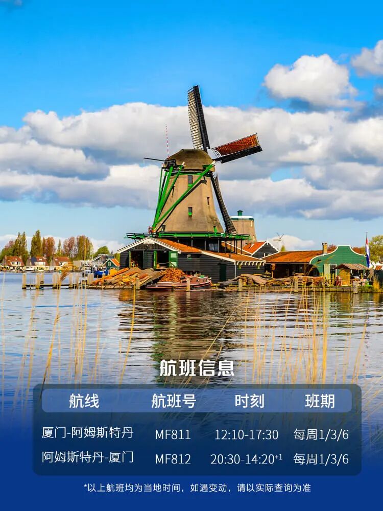 厦航增飞3月26日、27日厦门-阿姆斯特丹航线!