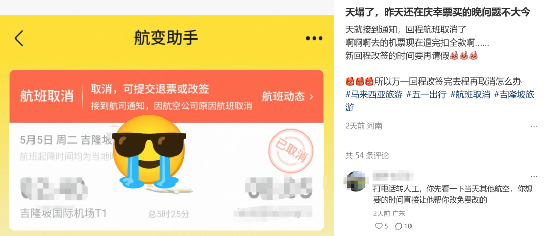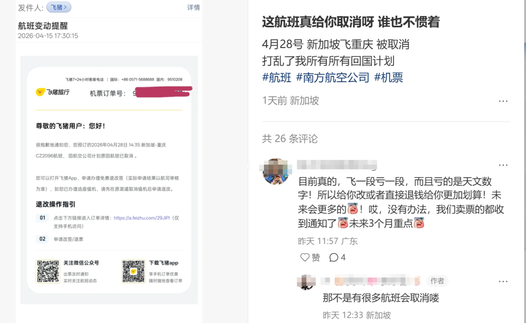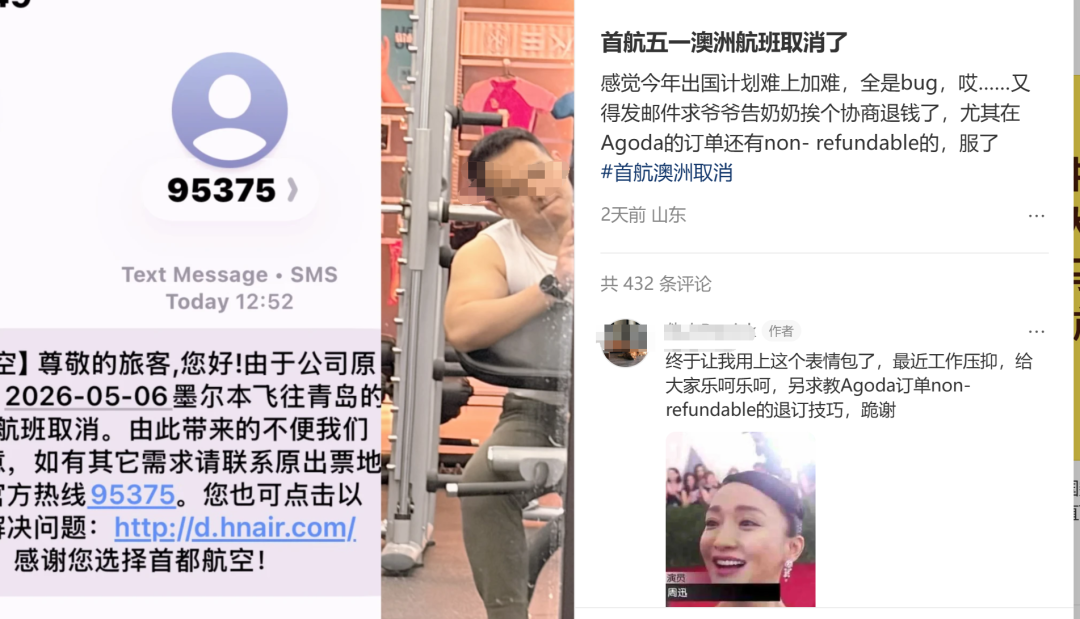 “五一”假期日益临近,不少计划出境旅游的旅客却遭遇了航班变动的困扰。近日,多位网友在社交平台发文反映,“五一”假期及前后,飞往东南亚、大洋洲地区的多个航班被集中取消,打乱了原本的出行计划。