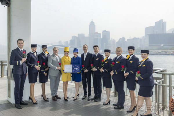汉莎机组身着复古制服亮相香港街头(汉莎供图)