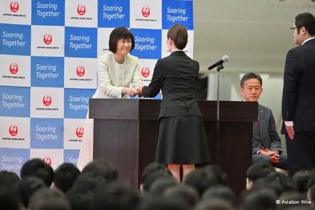 除了传统的致辞,日航的新人们还在集团史上首位女社长鸟取三津子的带领下,同时射出写上未来抱负的纸飞机,象征着梦想即刻起飞。