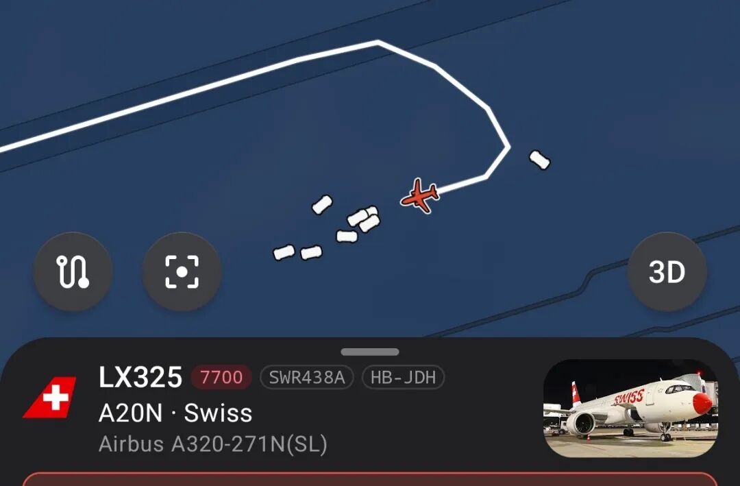 据Blick报道,当地时间4月6日,瑞士国际航空一架空客A220客机(注册号HB-JDH)原计划从伦敦飞往苏黎世,当飞到比利时空域时出现异常情况。