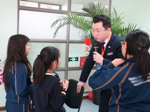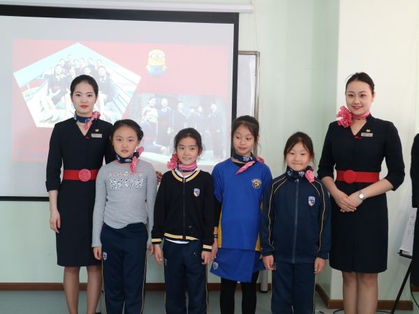 图:东航北京客舱部团委一行来到海嘉双语学校开展航空安全知识讲座